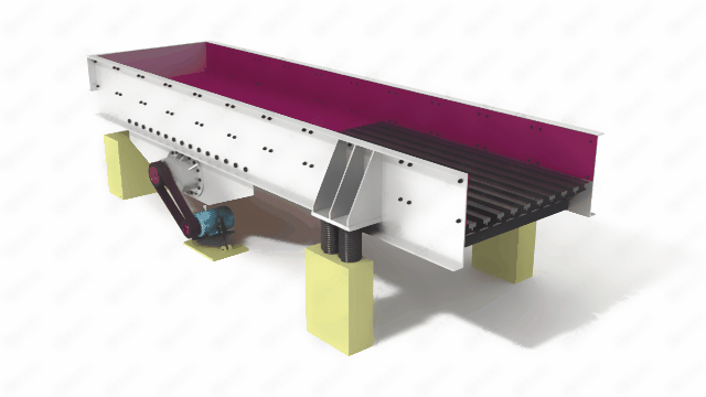 料槽配置單層篦條,可以對物料進行簡單預(yù)篩分,能有效去除原料中的細料和雜質(zhì),柵條間隙可調(diào),可防止物料堵塞。